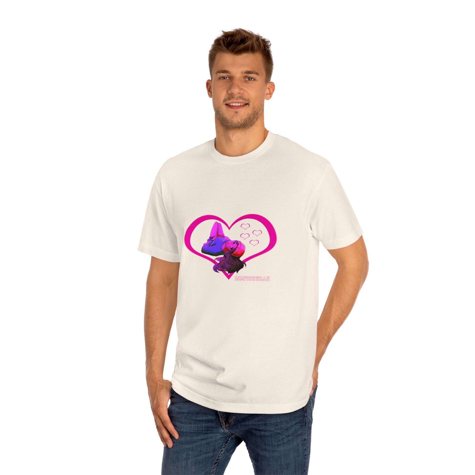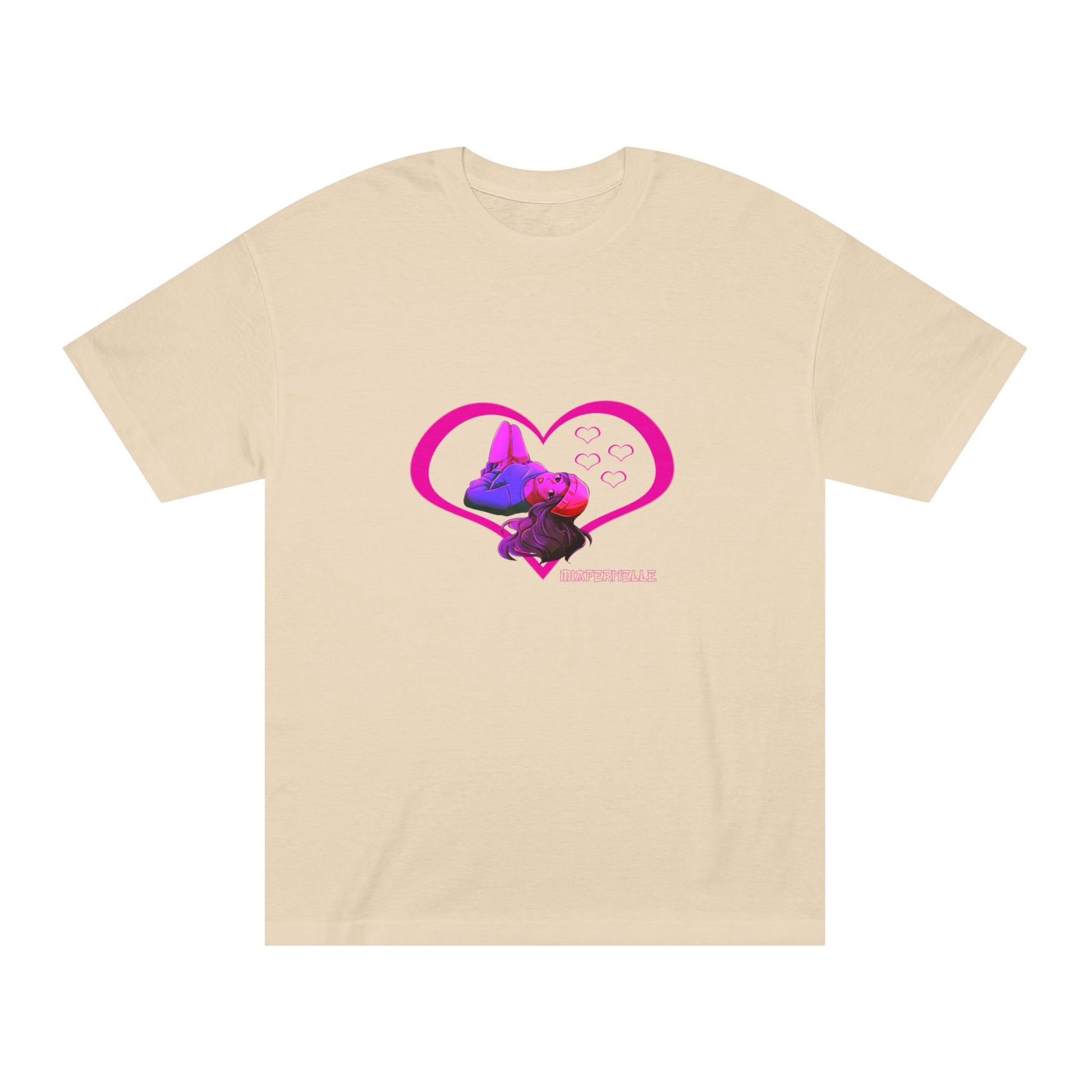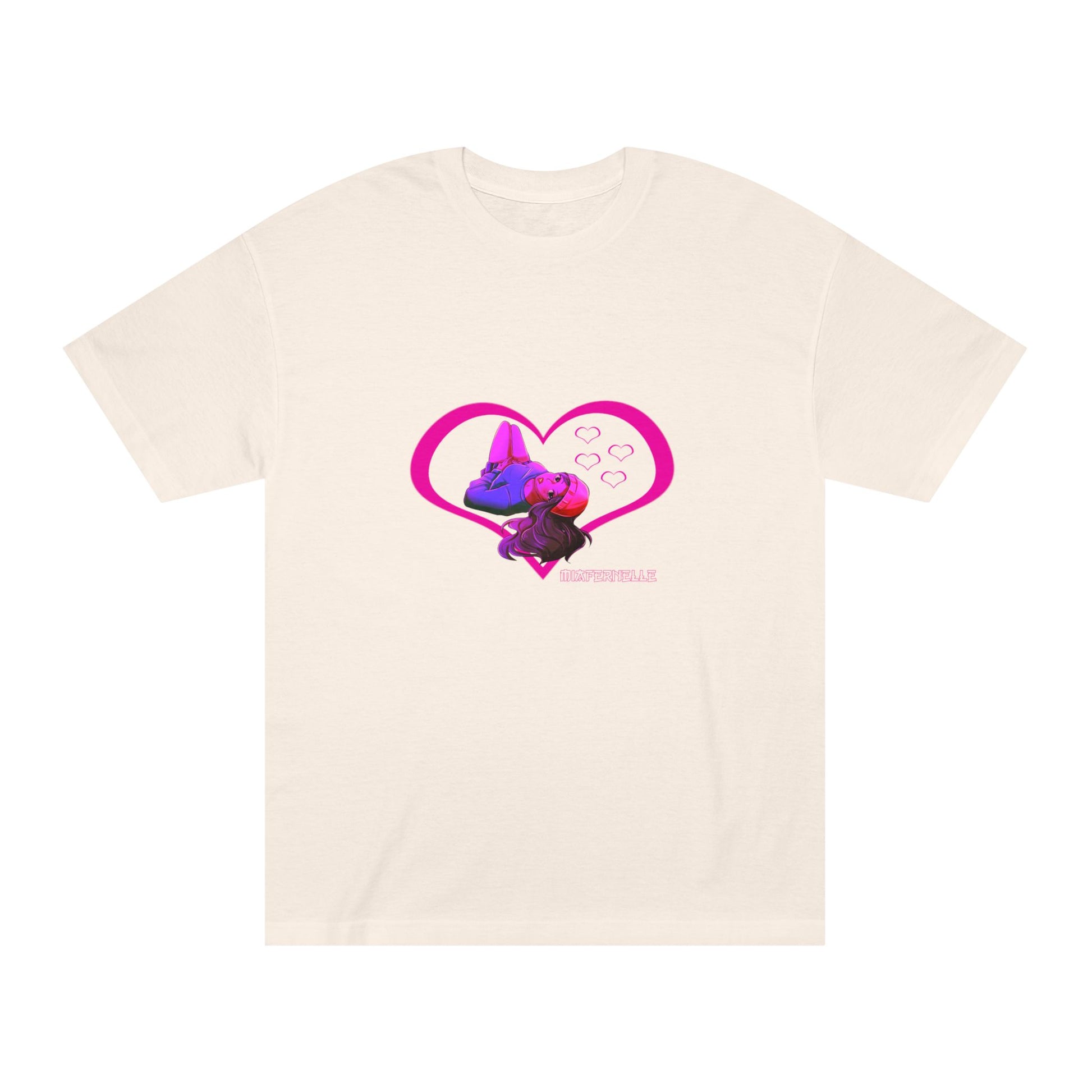 Arc 06: Velvet Crush, This tee drips with the warmth of a late-night love confession — soft, electric, and impossible to forget. Velvet Crush wraps your heart in a dreamy glow, blending vintage anime sweetness with futuristic flair. A bold magenta heart frames our cosmic muse, lost in thought, bathed in a crush-colored haze. Made for the moments that play on repeat. Love Mi.