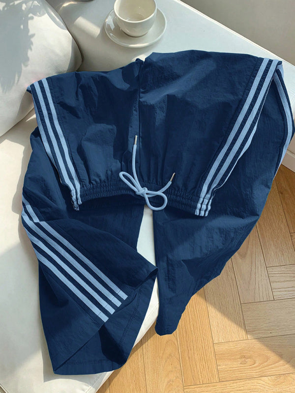 Side stripe elastic waist casual trousers